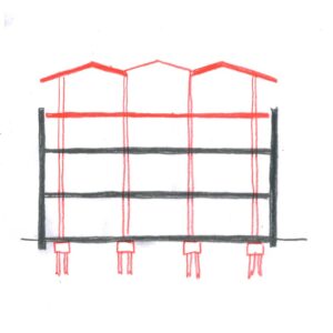 Transformation of an existing townhouse into 3 housing units and workshop spaces