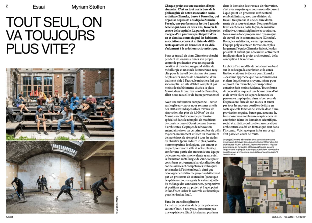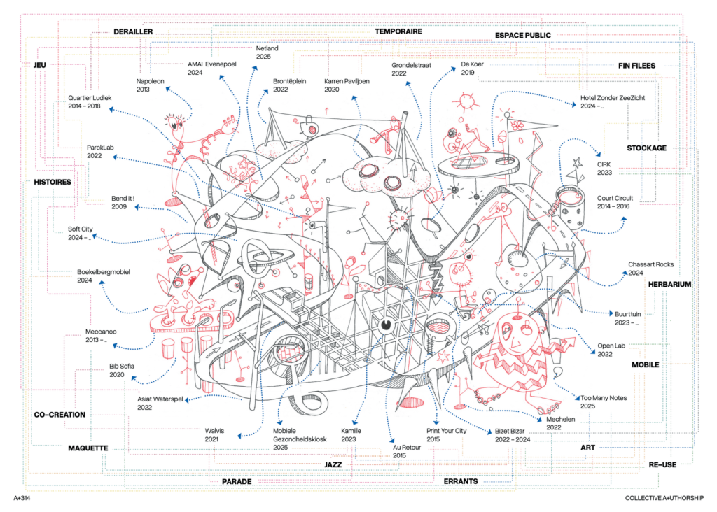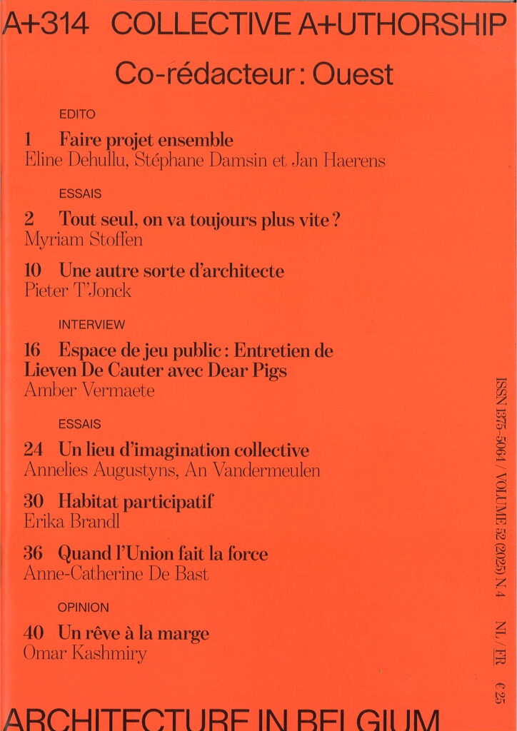 Curated by Stéphane Damsin and Jan Haerens of the Brussels architectural firm Ouest, the exhibition ‘Urban Legend’ will open on 15th October at Bozar. Drawing on stories from urban planners, artists and writers, they will present their vision of the city as a living organism. On the occasion of this show, they contributed to this issue of A+ on co-creation and shared authorship, a transdisciplinary approach in which non-architects are actively involved in the desing and construction process.