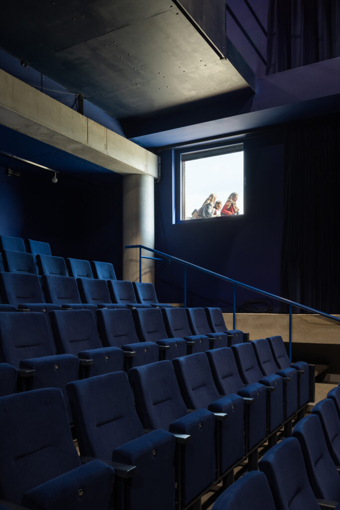 Ouest decided to take advantage of the specificity of this city, built on two levels of technical space, and pushed the stage one floor down. The project preserves the existing roof structure, creating the extra height within the existing gabarite, and avoids modifying the existing urban volumes too much.