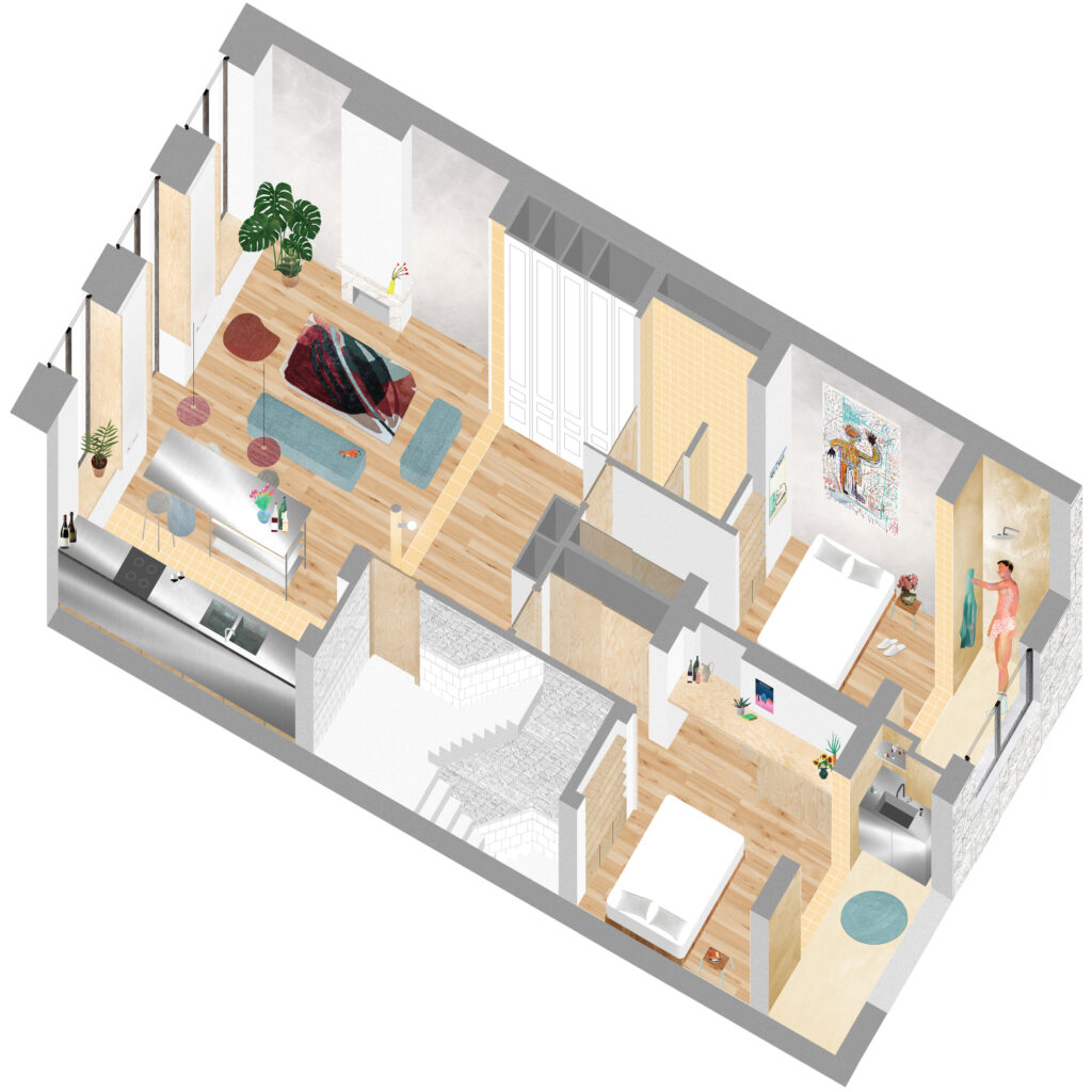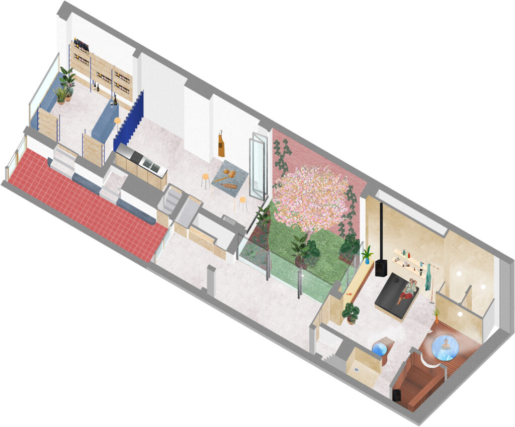 Transformation of a complete house into two dwellings, a bakery school and a wellness center.