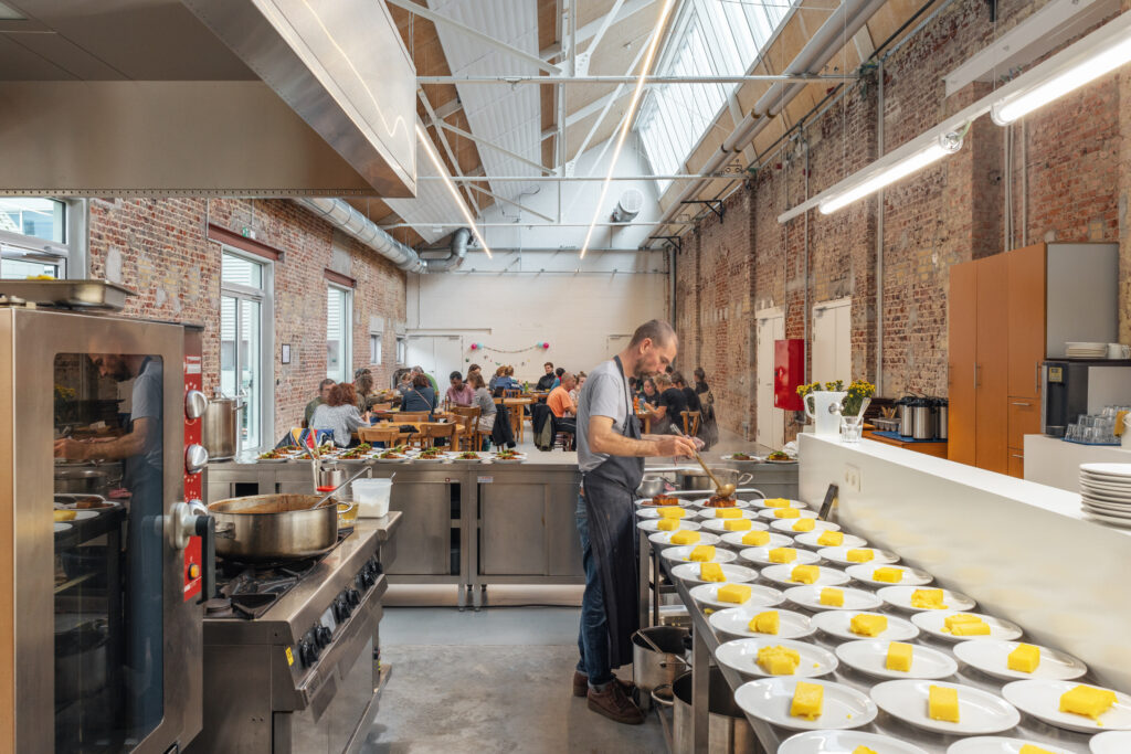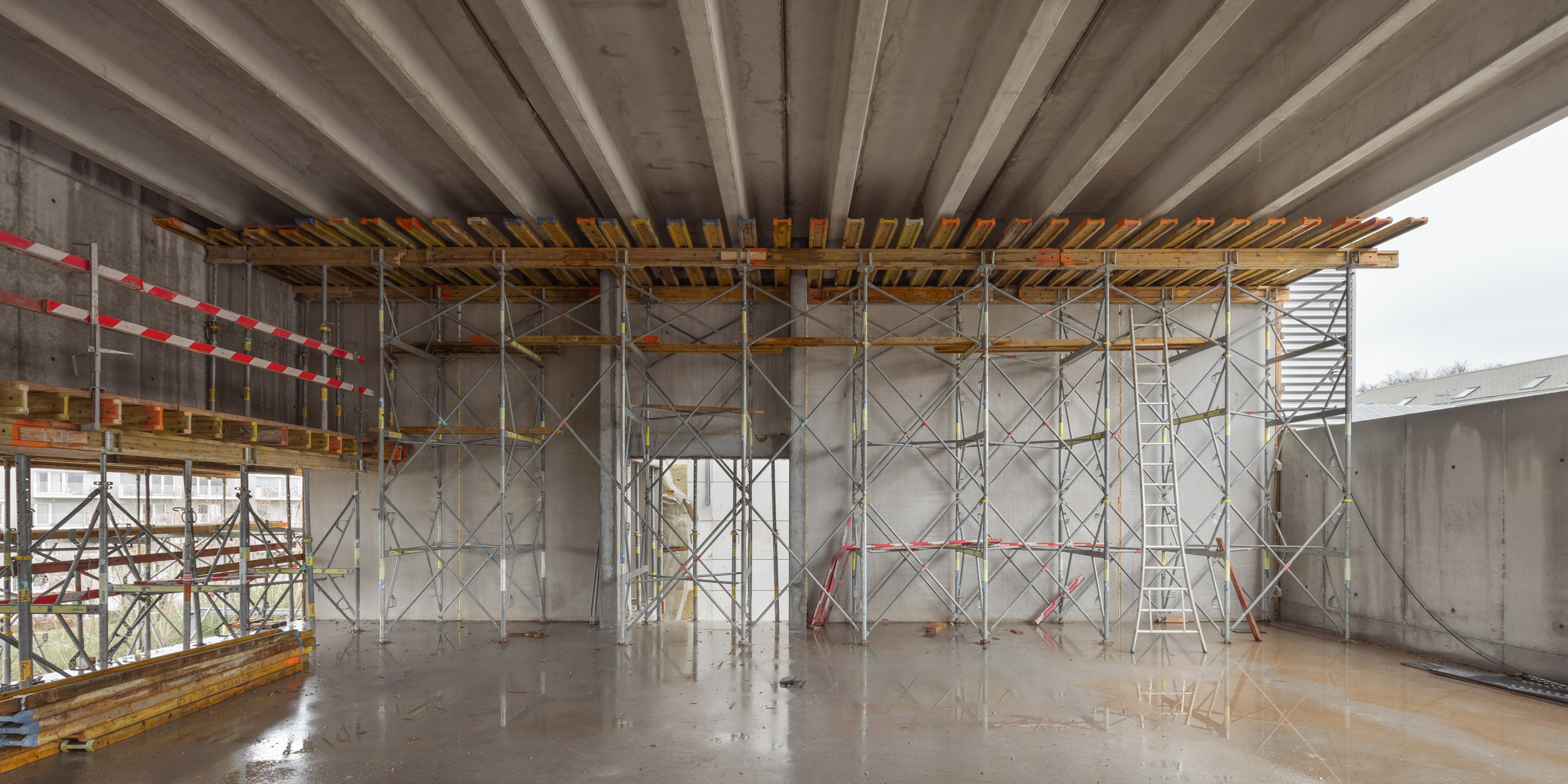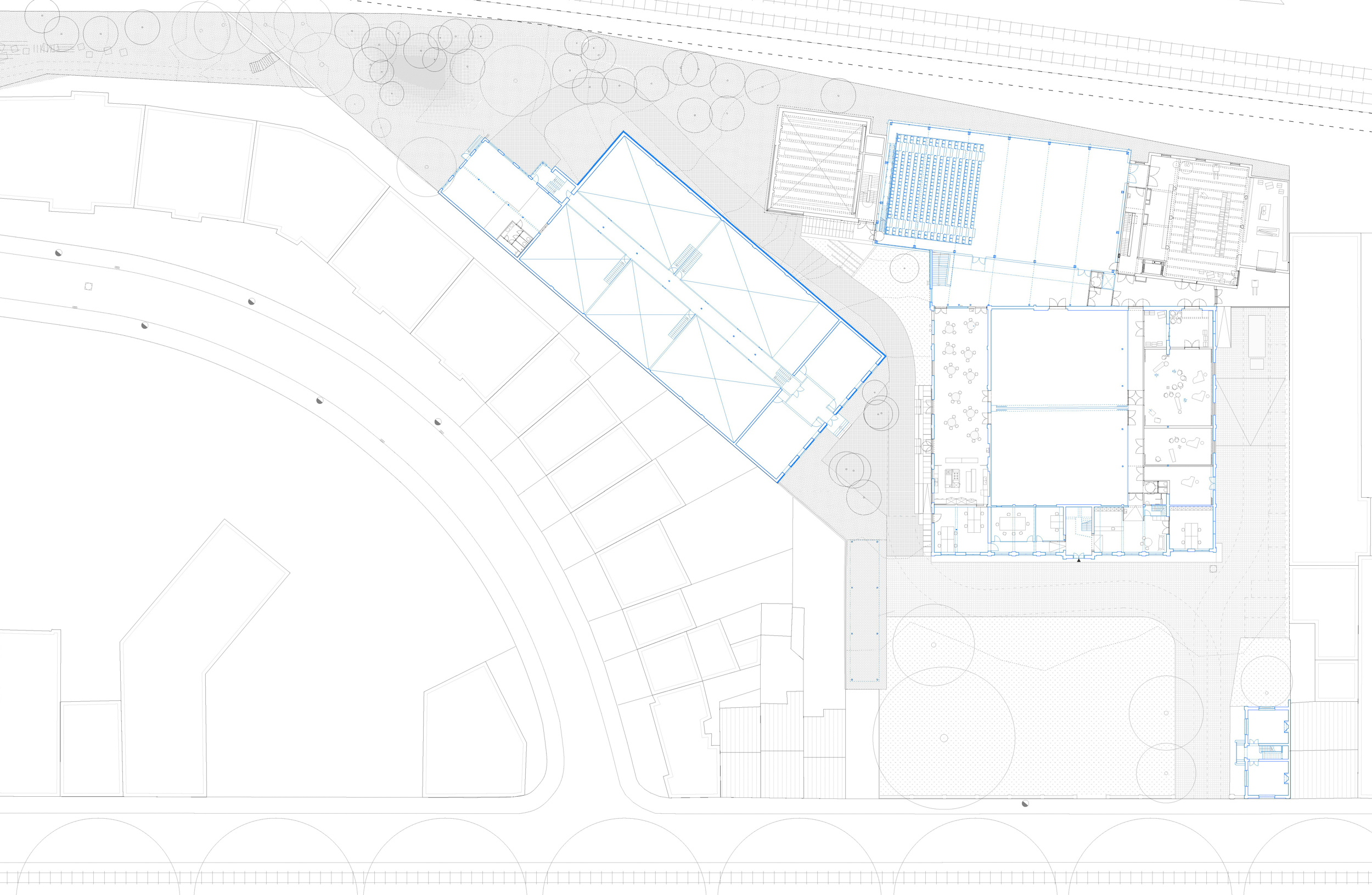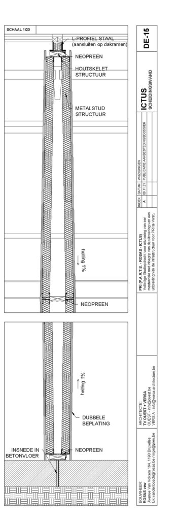 A former industrial site in Brussels (originally dedicated to laundry), converted for more than twenty years into a campus for internationally acclaimed dance school P.A.R.T.S., dance company Rosas and contemporary music ensemble Ictus. Several projects and buildings added along the years to the historical laundry. New programs/buildings for more dance studios, integrated into a new general masterplan/reorganization for the whole site and its landscape.