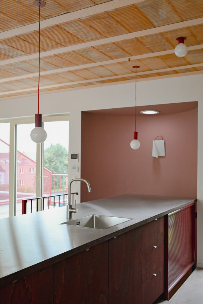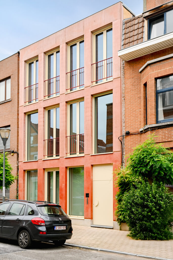 The house is located in Anderlecht in a pavilion urban fabric. The project is designed as an intergenerational house for a family and the parents. It is composed of 2 duplexes having a perfect autonomy and an access to the garden. The staircase profile of the construction allows generous terraces for the duplex above and a privileged connection with the garden.