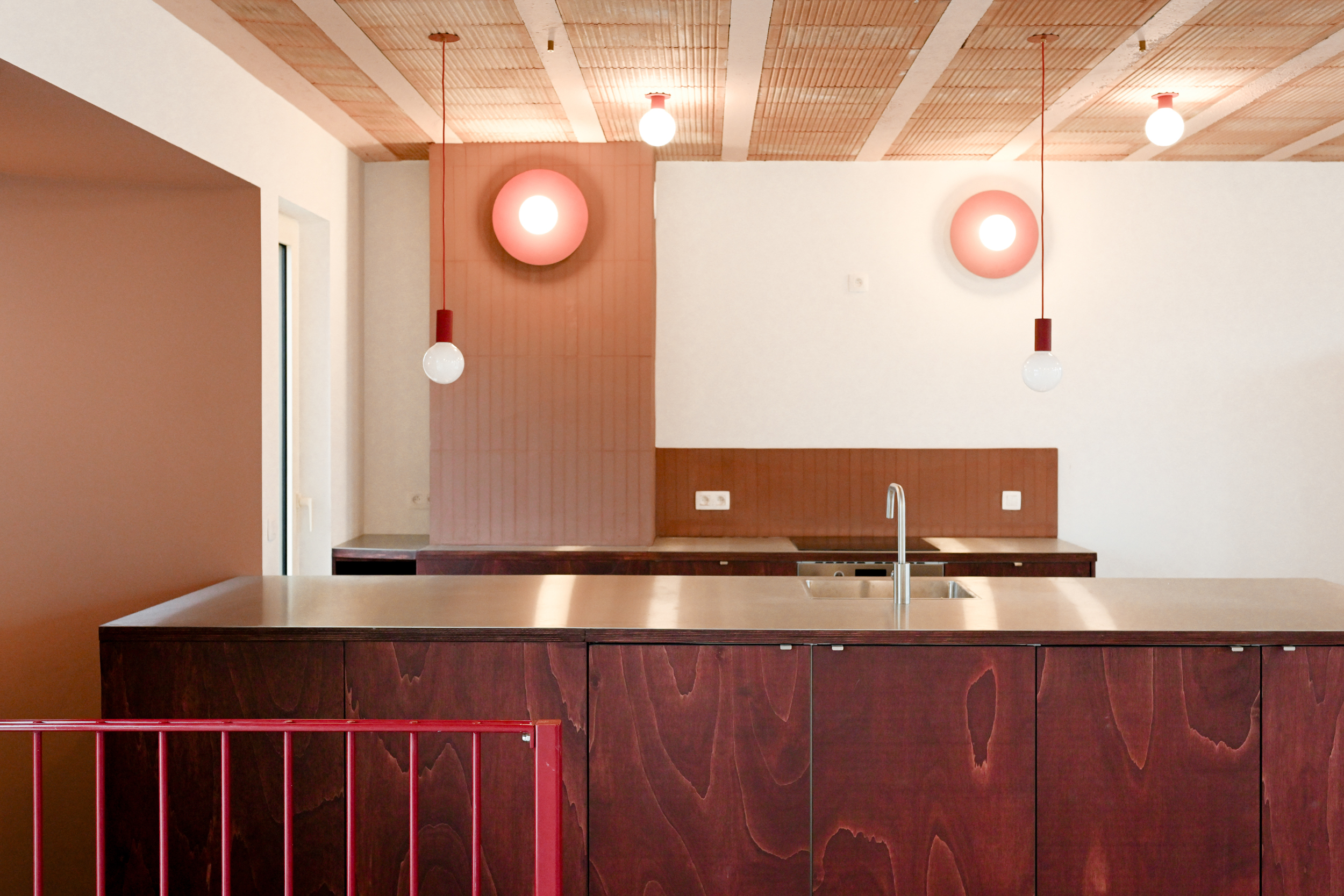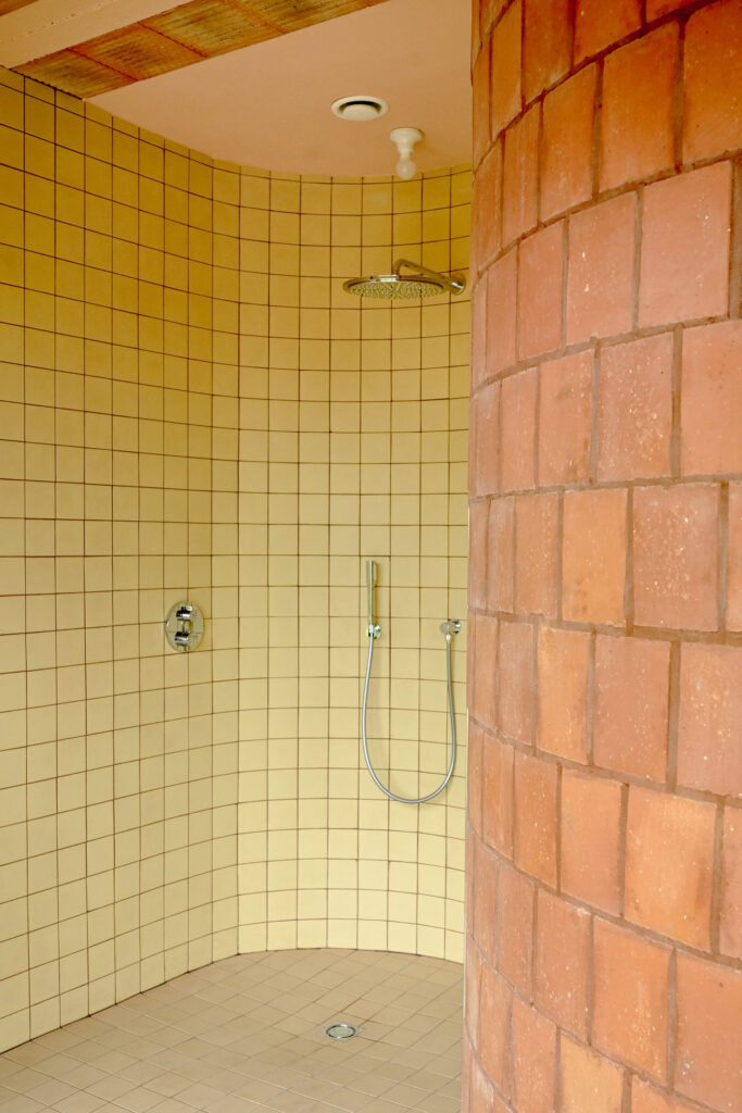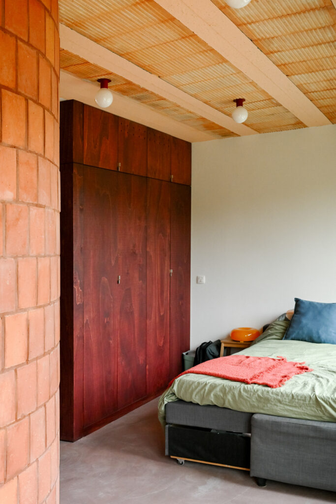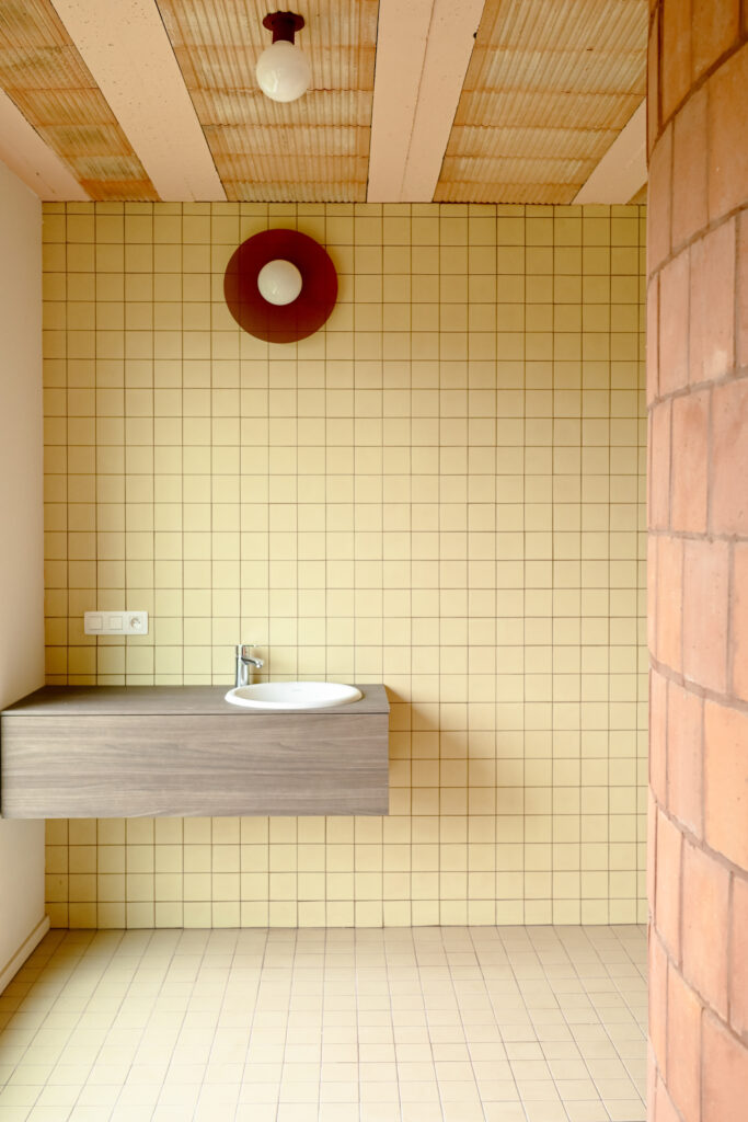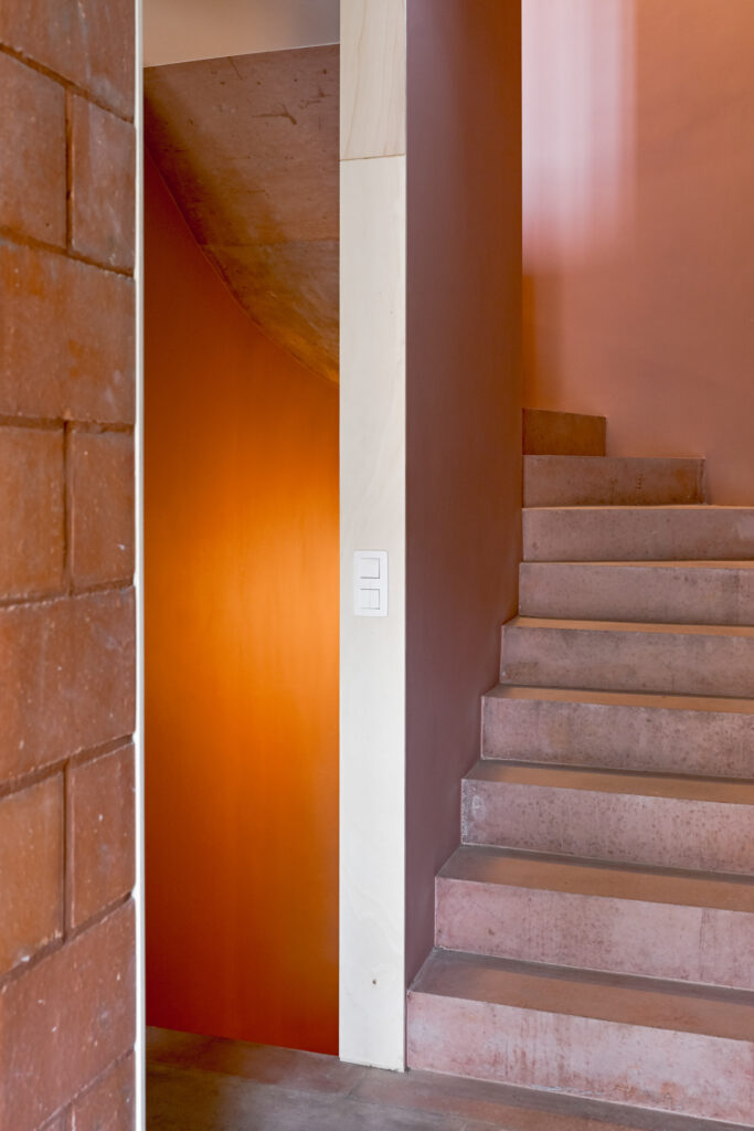 The exceptional character of these two autonomous objects punctuate the rigidity of the plan and the façade through a color and a sustained materiality that gives them a readability at all levels of the house.