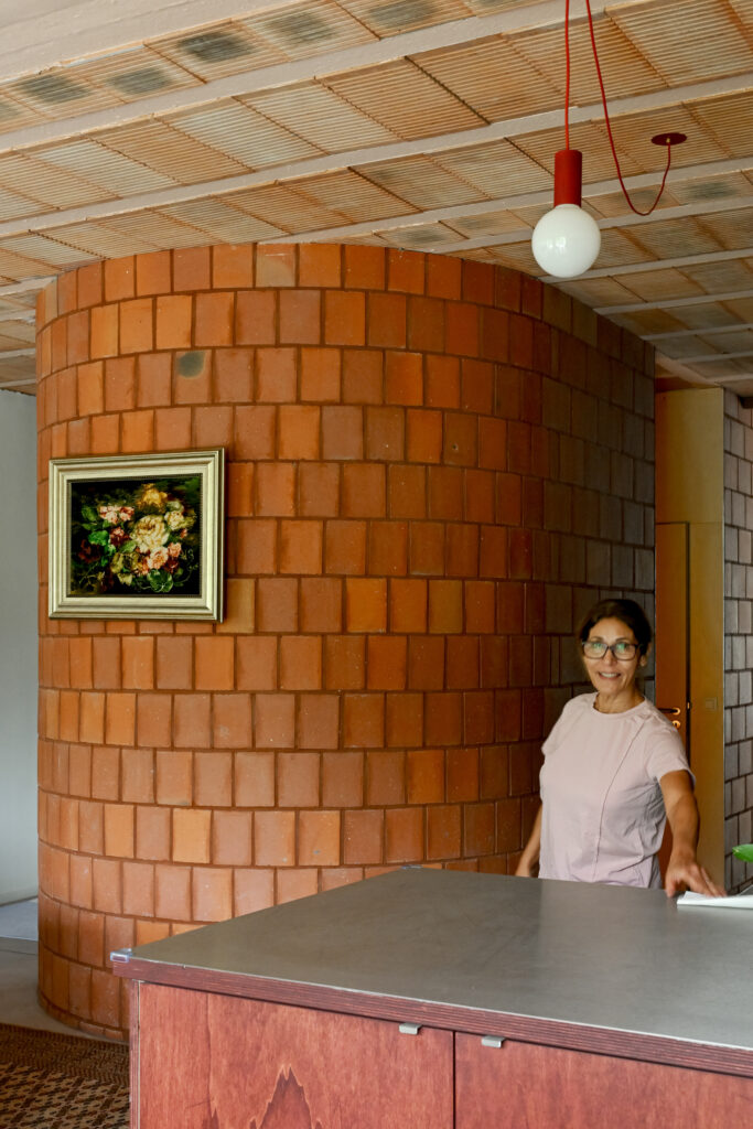 The front façade is a simple grid in red colored concrete that resumes the brick language of Puccini Street. The house has two faces depending on whether it is addressed to the street or the garden, giving it a singular originality.