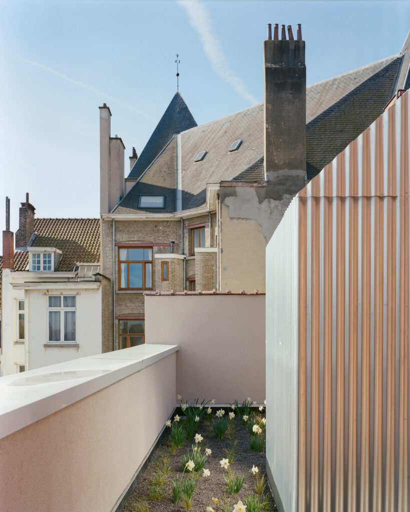 Located in a dense and vivid neighborhood of the city, the project reorganizes and connects three existing buildings, each one facing two parallel streets with different qualities. A former cinema and individual housing towards the important Chaussée de Haecht, a former theatre towards the backstreet, much more residential and intimate than on the other facade.